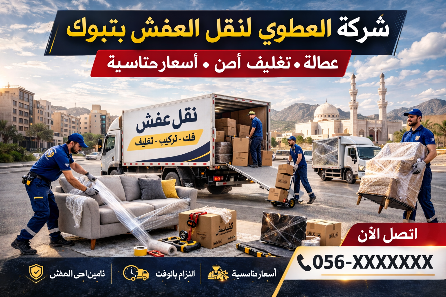 تقدم شركة نجاح العطوي لنقل العفش بتبوك خدمات نقل أثاث احترافية تناسب جميع المنازل والشقق والفلل بأسل..